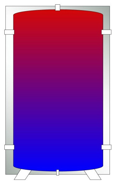 - Буферна ємність може протягом тривалого терміну зберігати в собі тепло. Тепло з буферної ємності можна витратити порційно, в залежності від потреби системи.