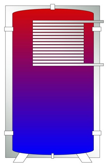 Конструктивно представляет собой теплоаккумулирующую емкость со встроенным баком ГВС из нержавеющей хром-никелевой стали. Встроеный внутренний бойлер предназначен для приготовления горячей воды для хозяйственных нужд. Может быть оснащен магниевым анодом.
